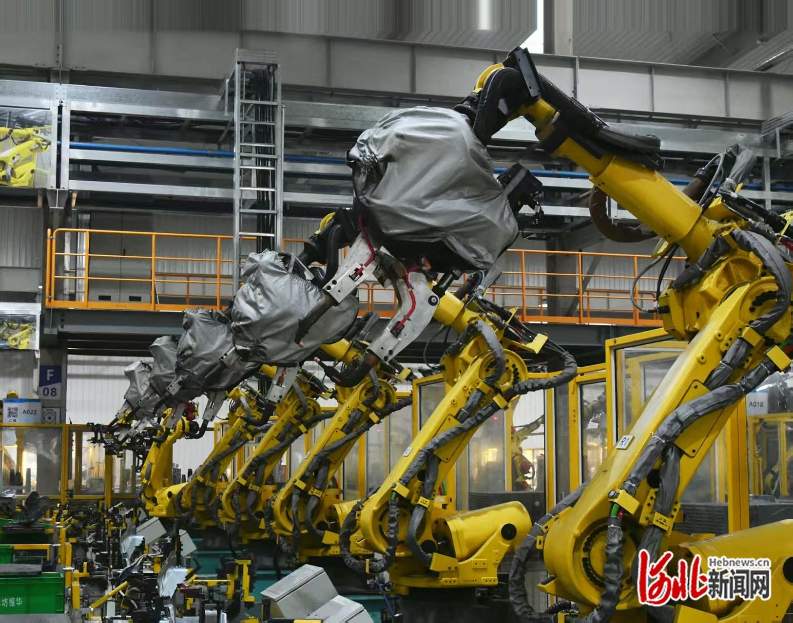 12日上昼,记者刚一走进廊坊振华全京申汽车零部件有限公司的厂房,一股重金属气味就扑面而来:占地6万多平方米的车间内,料思中辽远工东谈主穿梭、物料挪移的忙碌情景并未出现,拔帜树帜的画面宛如“科幻大片”——100多台黄色机器东谈主正挥舞着机械臂按照预定编程进行焊合。焊枪的“嘶嘶”声应和着机械臂动弹的低千里嗡鸣,在空旷的车间里回响。