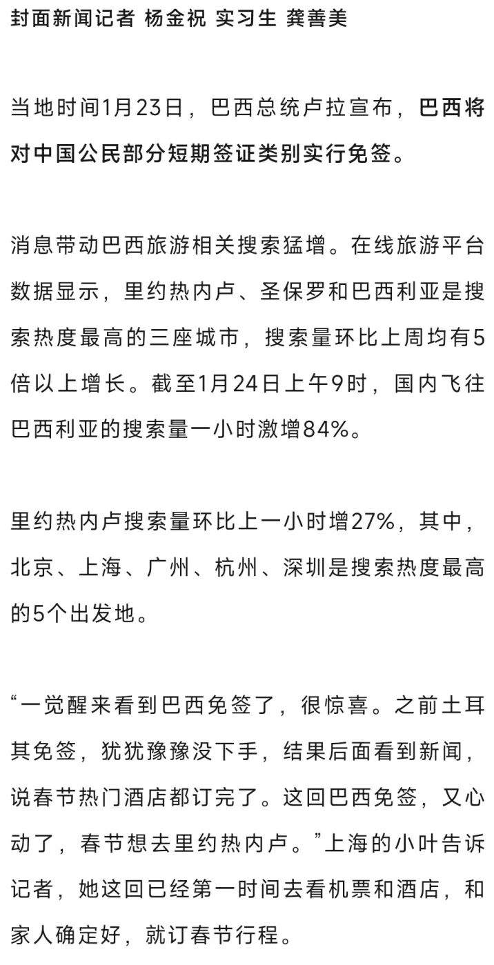 股票配资行情资讯平台_配资炒股市场信息解析 搜索量飙升!巴西免签,引爆中国旅客春节出游关怀
